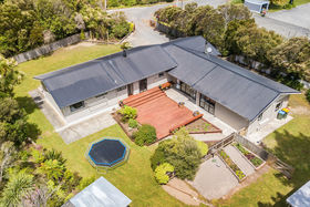 There's plenty of doors leading to the enormous outside area with an expansive deck, room for the kids to play ball, a playhouse with climbing wall, a garden to tinker in, or just sit back and relax in the sun. Bring all the toys, there's plenty of room to park the campervan, boat and trailer.