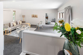 There is much on offer with 4 good sized bedrooms including a supersized master wing with its own lounge, WIR and a very elegant ensuite. Complimented by a family sized kitchen with an excellent living area, a spacious formal lounge, study nook, large laundry, good sized garaging and 2 wood burners to keep you warm in winter. The light floods through multiple floor to ceiling windows in this home, with its special eco climate making this home the perfect sun trap.